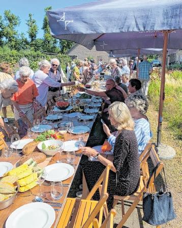 Een Franse lunch, zo noemen ze het. En als je van die reclamefilmpjes ziet met van die grote gezelschappen aan een lang tafel onder de bomen, dan lijkt dit er verdacht veel op.