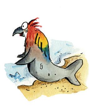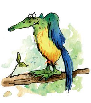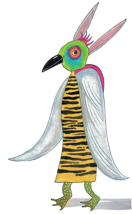 Hij heeft de snavel van een kraai, de vleugels van een reiger, de kleuren van een papegaai, de strepen van een