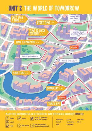 Elke unit begint met een overzicht. Dat is de weg die jij tijdens de unit aflegt om de leerstof te verwerken.