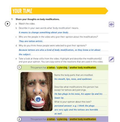 Daarna is het aan jou: Your time! Voor het eerst ga je de nieuwe leerstof gebruiken om zelf te vertellen en te schrijven.