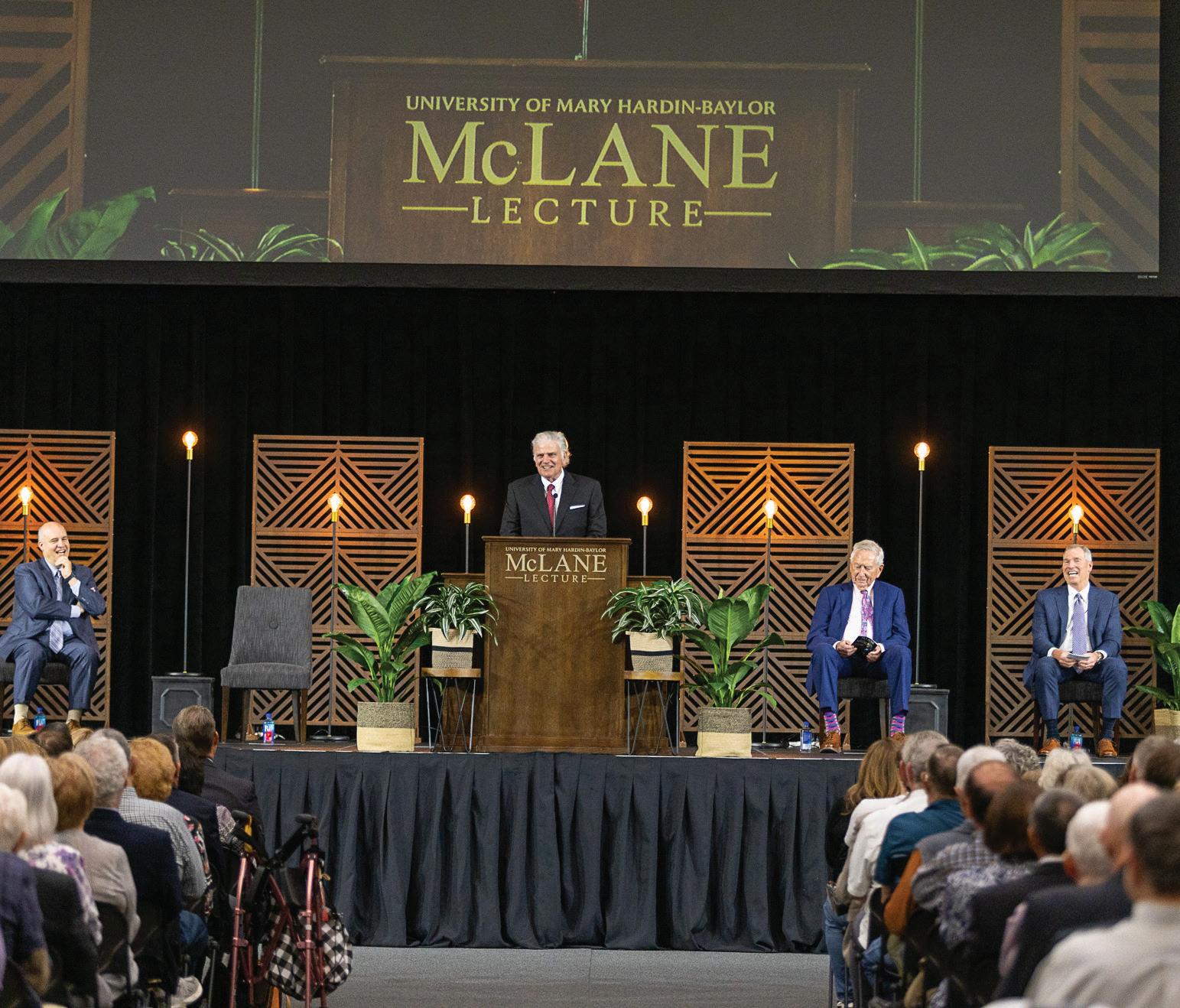 More than 2,500 students and guests welcomed Christian evangelist and missionary Franklin Graham as the featured speaker for the 2023 McLane Lecture on Oct. 11 in the Frank and Sue Mayborn Campus Center arena.