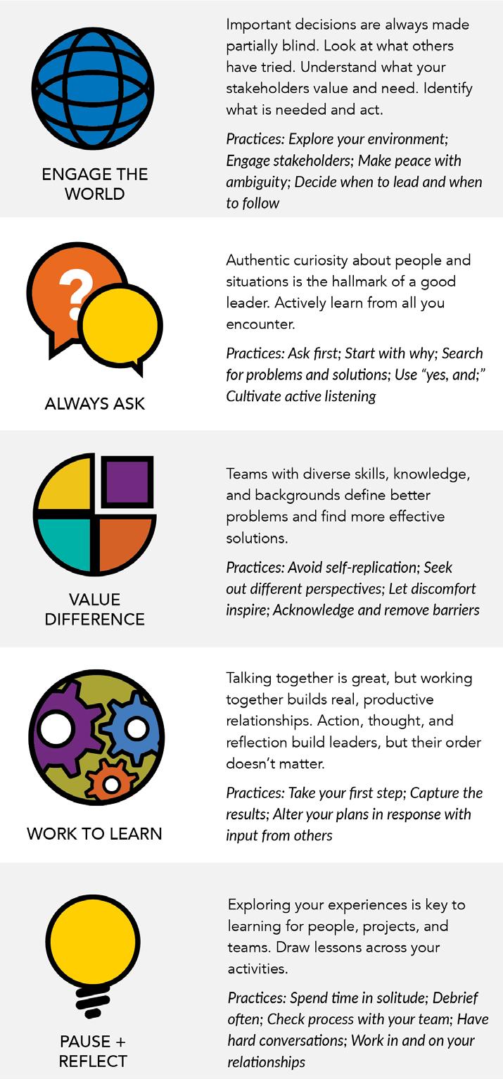 A shared focus of BLI programs is the ten leadership habits. We invoke the idea of habit to signal that developing effective leadership takes sustained work and routine practice – until something becomes second nature. The Habits are crafted to be general and practiced with increasing complexity as circumstances require.