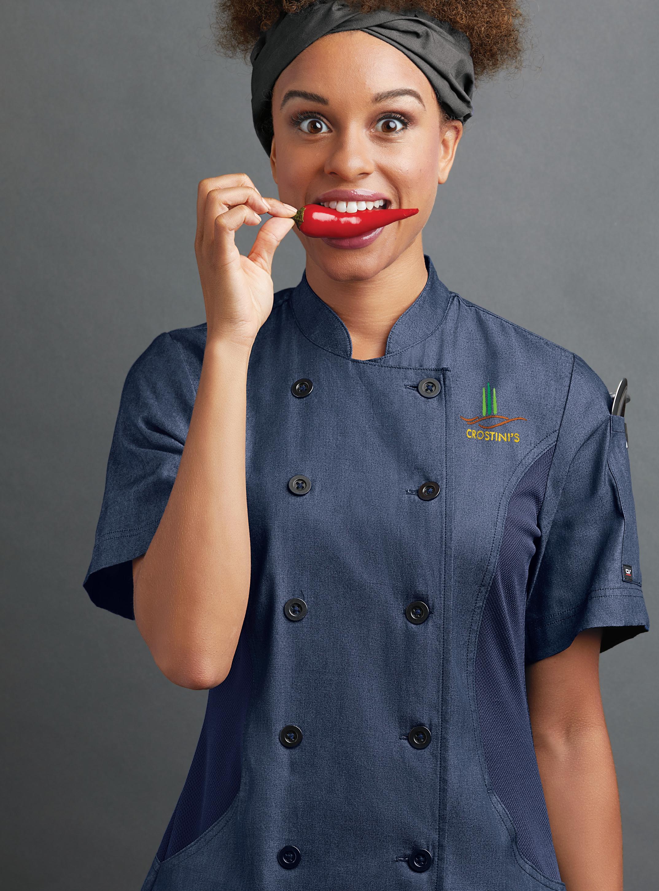 look of this chef jacket. The material and design keep you cool in a hot kitchen.” LUCA