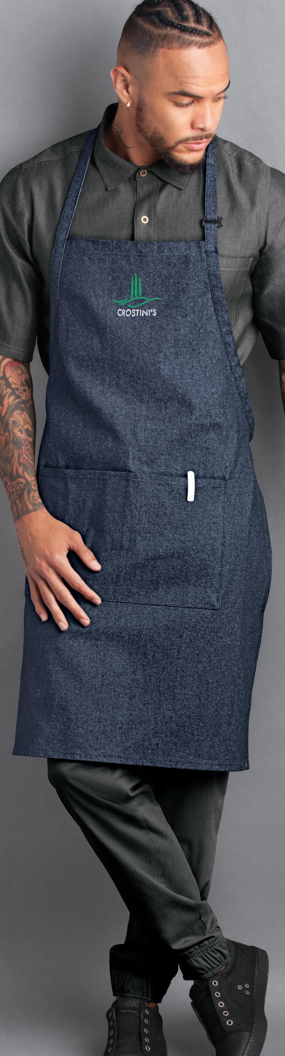 durable metal grommets Industry Line Premium Denim Cross Back Unisex Bib Apron 100% Cotton Premium Denim 37” L x 31” W. | ONE SIZE REG $29.99 125120