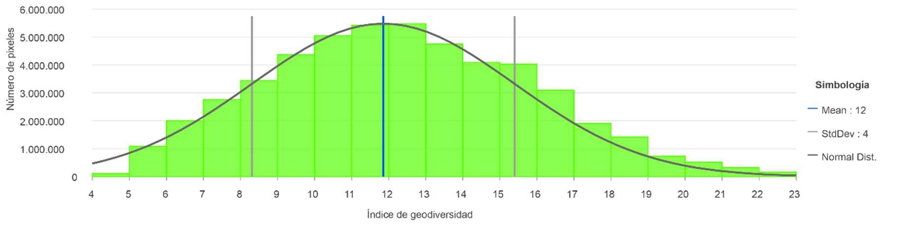 Se determinóque lazona deestudiopresentaíndicesdegeodiversidad quevarían entre 4 a 23, distribuidos de forma simétrica y homogénea, y al menos el 68% de su extensión se encuentra valorada con un índice de geodiversidad comprendido entre a 8 a 16, concluyendo que el geoparque Napo Sumaco Aspirante UNESCO presenta geodiversidad baja a media.
