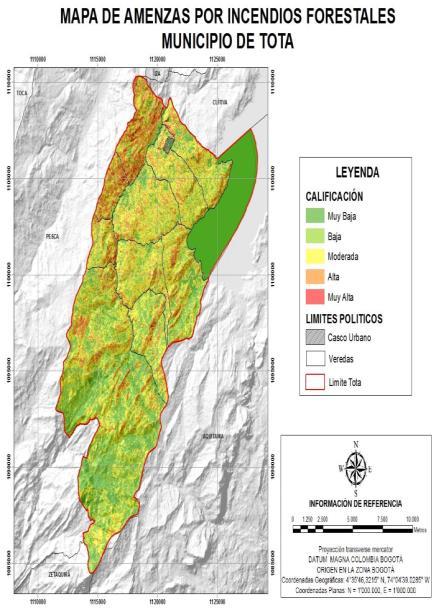 Figura 11. Mapa de Amenazas por Incendios Forestales en el Municipio de Tota.