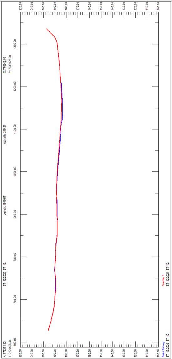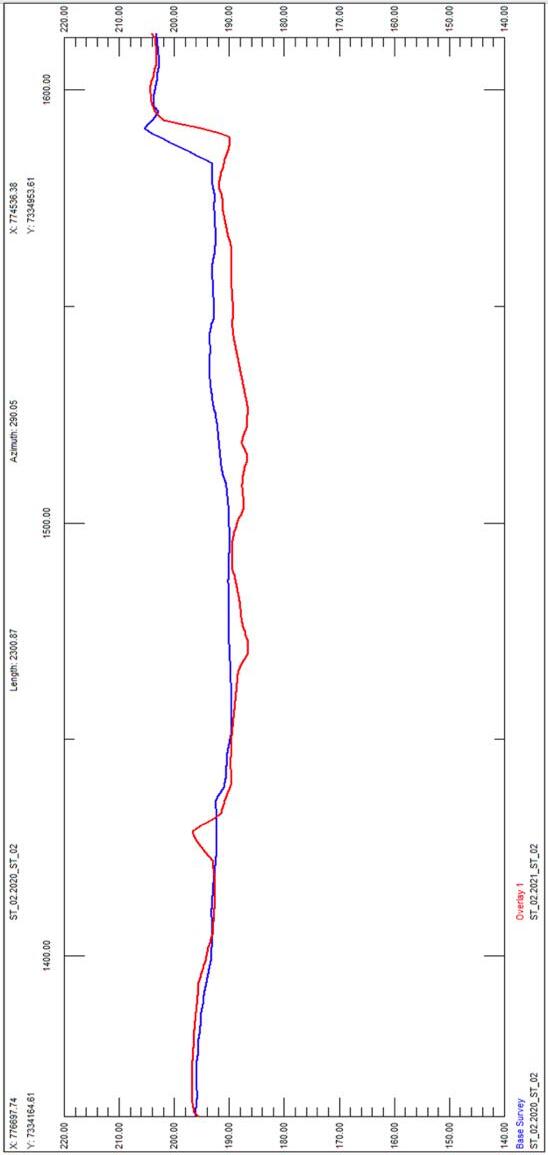 Figura 4.9: Comparativo de perfil longitudinal (talweg) 2021 vs 2020 en el área piloto del embalse de Itaipu.................................................................................................................78