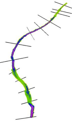 Figura 3.22: Extracción de datos Multibeam sobre secciones transversales definidas. ......
