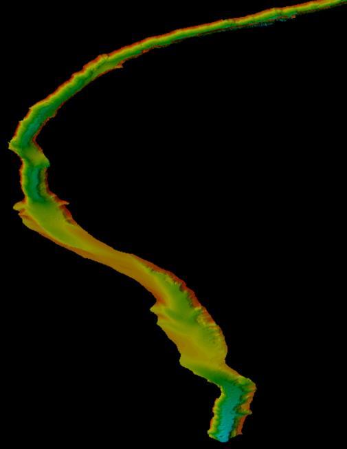 Figura 3.7: Lecho del canal del embalse en diferentes tramos obtenidos con Multibeam