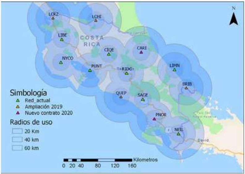 Costa Rica al ser un país muy pequeño, tiene, una densidad de estaciones por kilómetro mayor que países como México o Colombia, pero menor que países más desarrollados como Japón y Estados Unidos. Esto demuestra la robustez en el aparato geodésico del país y los beneficios que tienen estas herramientas en el país como es la proliferación de un catastro georreferenciado dentro de un marco geodésico estable y fijo, también la participación continua en trabajos geodésicos como análisis de deformaciones, georreferenciación y análisis vulcanológicos. En el sector constructivo como obras de carreteras, represas, construcciones de edificaciones la utilización de estos sistemas brinda un marco de frecuencia estable y garantiza la continuidad de los proyectos.