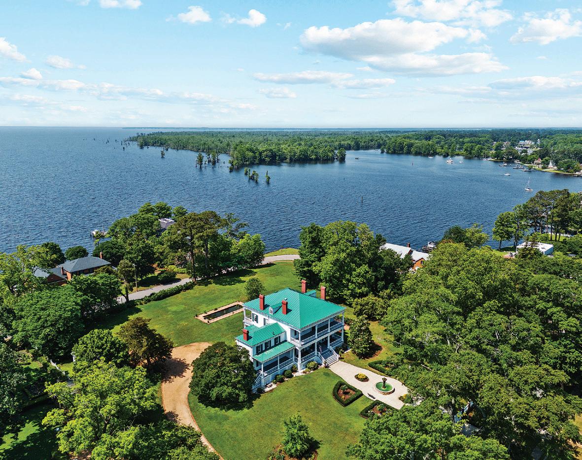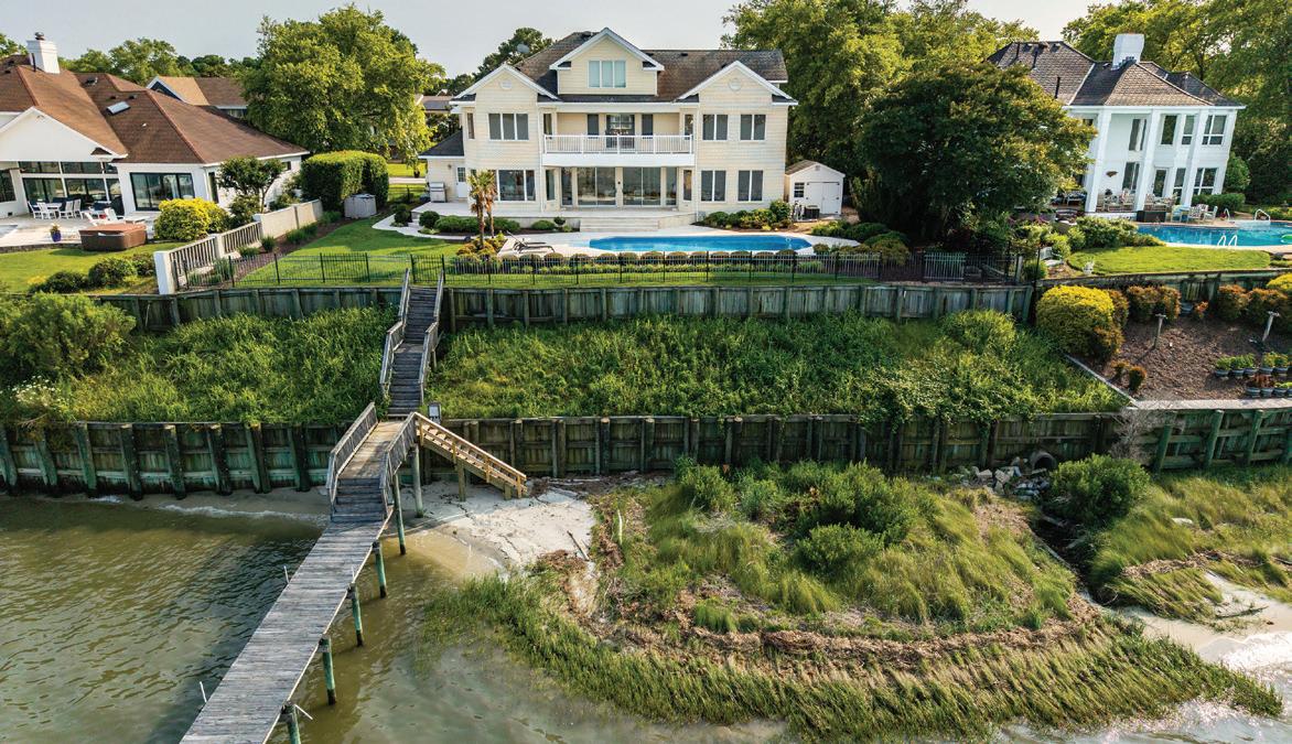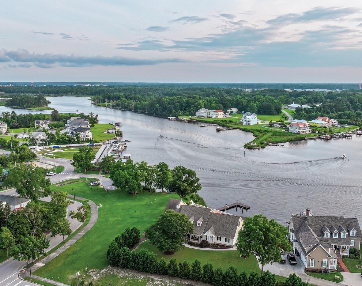 One-of-a-kind, waterfront home located in Eastern North Carolina. Nestled next to the picturesque downtown Riverwalk Park, this stunning property was built on an elevated homesite that eliminates the need for flood insurance, ensuring peace of mind for years to come. The outdoor oasis begins with beautifully manicured Bermuda lawns, enhanced by an irrigation system sourced from the onsite well. $1,950,000