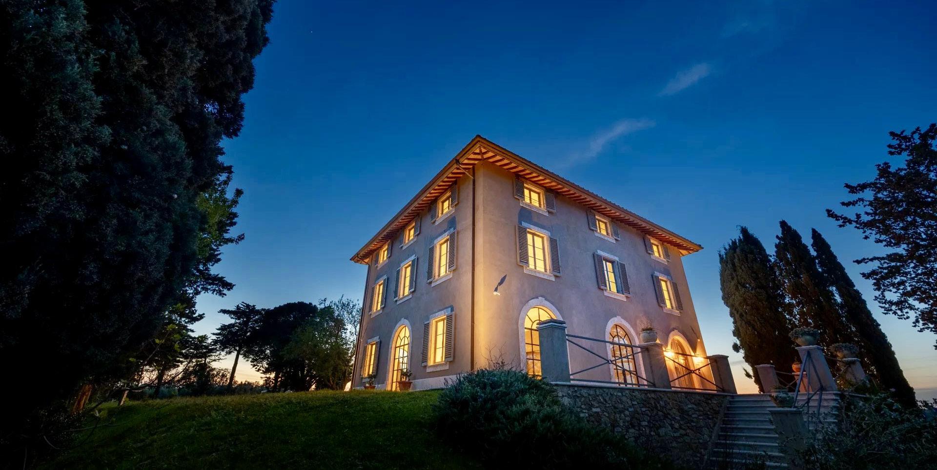 Perched in Tuscany’s rolling hills, this renovated villa offers sweeping sea and countryside views, a vineyard, olive groves, infinity pool, and refined interiors blending timeless Tuscan character with contemporary Provençal elegance. Price upon request