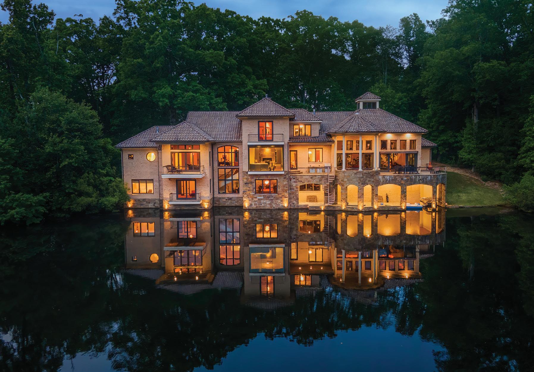 Set on nearly 8 private acres in Cary, just moments from upscale shopping and dining, this 9,692-square-foot estate offers rare, grandfathered-in proximity to a private 4-acre spring-fed lake—closer to the water than any home can be built today. Enjoy sweeping lake views, a wine cellar, indooroutdoor pool, English pub, theater, and gym. $8,600,000.