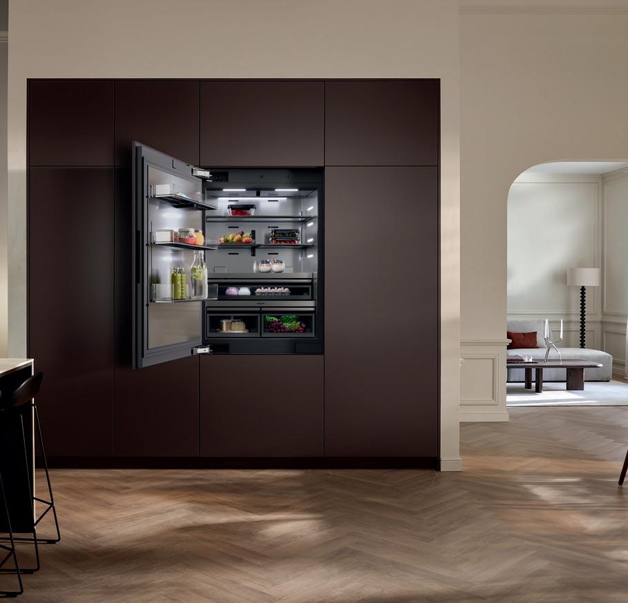 Select models of Miele MasterCool refrigeration products feature up to four built-in cameras that allow users to monitor refrigerator contents remotely, helping reduce food waste.
