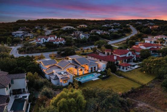 AUSTIN This gorgeous residence overlooks the #8 green of the Spanish Oaks Golf Club, providing tranquil panoramic views. The interior is dramatic featuring high ceilings, floor-to-ceiling Rehme windows, an open floor plan and exquisite color palette. Enjoy multiple indoor/outdoor entertainment areas with room to accommodate in the detached guesthouse with a rooftop deck plus an upstairs bunk room that sleeps 6. Relax at your resort-style pool, spa and a koi fish pond. The home is located in the Spanish Oaks neighborhood, which offers 24/7 gated security and world-class amenities including: Spanish Oaks Golf Club, Austin Tennis Academy, community pools with resort-style lodge plus miles of hike/bike trails. $7,473,000