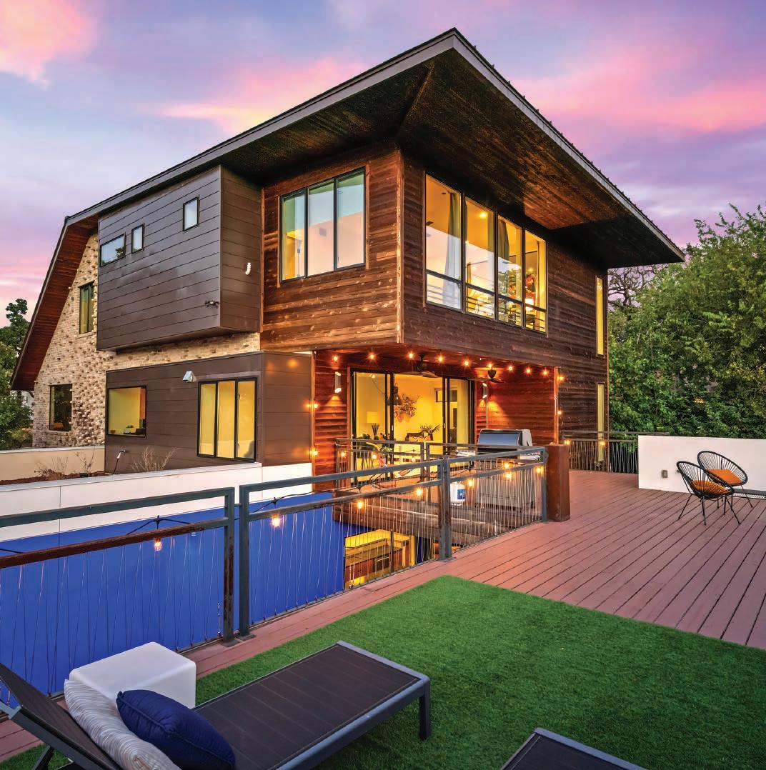 AUSTIN In the heart of central Austin’s coveted Clarksville neighborhood, this 4,784-sqaure-foot home features the modest facade of an original 1938 bungalow, paired with a breathtaking contemporary build-out. Creative sourcing of original materials, pops of color, and superior design are just a few of the ways this gem has gained popularity in the world of Austin architecture. Walk through the front door and experience a journey from traditional charm to modern luxury. The oldworld entryway leads to a bright, spacious kitchen boasting a Bertazzoni range and Euro cabinetry. Step outside the sliding glass doors onto a large deck, ideal for entertaining guests and basking in the area’s natural beauty. This exceptional home pays homage to tradition and redefines modern living. $3,790,000