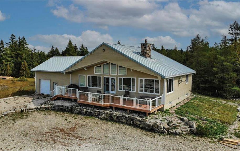 SOUTH BRUCE PENINSULA, ONTARIO This property boasts just under 100 acres with 2 ponds and a 1-level, custom-built stone bungalow with in-floor heating, and high-end windows, doors, and finishes throughout. It also features an attached 2-car oversized garage and a separate 3-car garage with an upper loft. $1,695,000