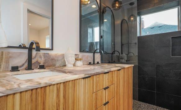 This stunning property in the Sugarhouse neighborhood has been transformed with a full remodel, resulting in a truly special home. The abundance of natural light and a vaulted ceiling above the dining area create an airy, open living space leading to a large deck and beautifully landscaped private yard, perfect for entertaining. The kitchen was designed to drop jaws with natural stone countertops and cast concrete tiles. Brand new electrical, plumbing, AC and more. The exterior has a pergola-covered front deck, huge back deck and 2-car garage. The landscaping features climate-appropriate native plants on a drip irrigation system, mature fruit trees, and concrete pad for adding a hot tub or ADU. This is a incredible home thoughtfully designed to create a unique living space. $1,150,000