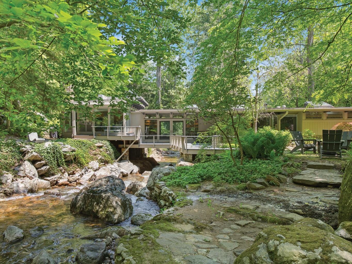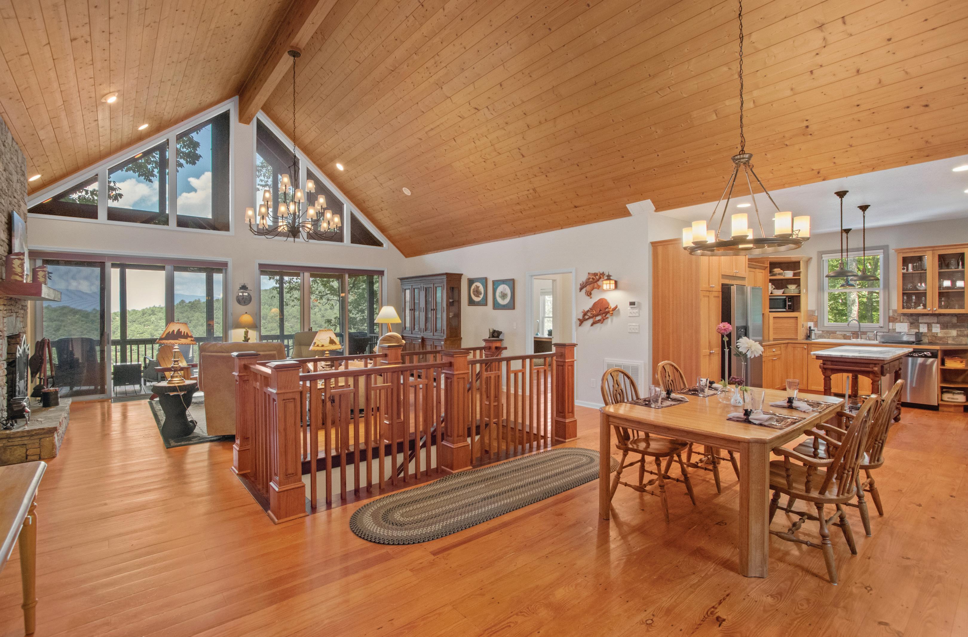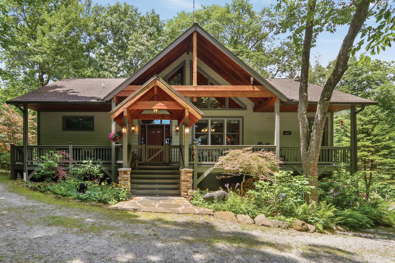 This charming cottage, situated within Wildcat Cliffs Country Club in Highland, North Carolina, exemplifies mountain elegance, tranquility and privacy. This cottage is perfect for fall evenings on the screened porch by the fire while listening to the soothing sounds from the backyard waterfall. The open-concept living and dining room boasts cathedral ceilings accented with a stacked-stone, wood-burning fireplace as the focal point. The primary bedroom and bathroom are generously sized. The primary bath includes a large walk-in shower and double vanities.