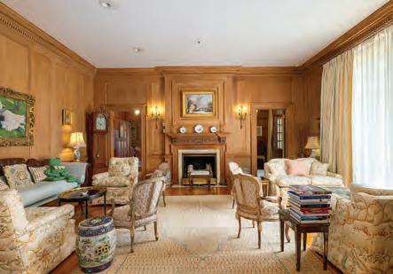 The gorgeous original windows welcome the light into every room, and they provide a lovely frame for the historic oaks and many mature trees, as well as the new 50-foot lap pool with fountains which the current owners added. One may enter this secret garden space through a pair of stately iron gates