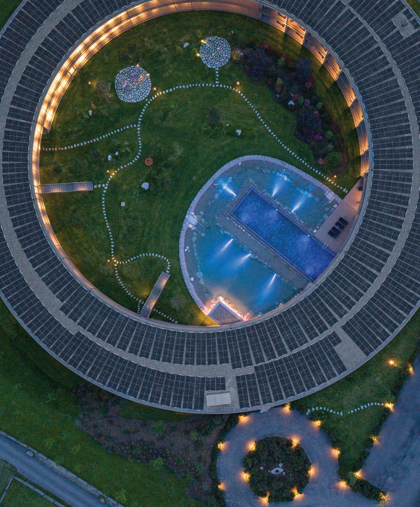 Explore distinctive eco-living at this oneof-a-kind aparthotel in Italy. by