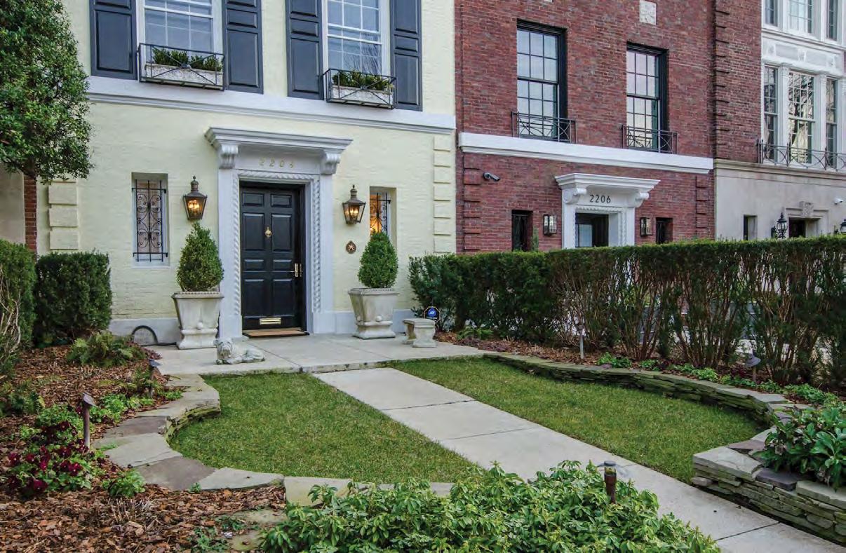 The gorgeous original windows welcome the light into every room, and they provide a lovely frame for the historic oaks and many mature trees, as well as the new 50-foot lap pool with fountains which the current owners added. One may enter this secret garden space through a pair of stately iron gates