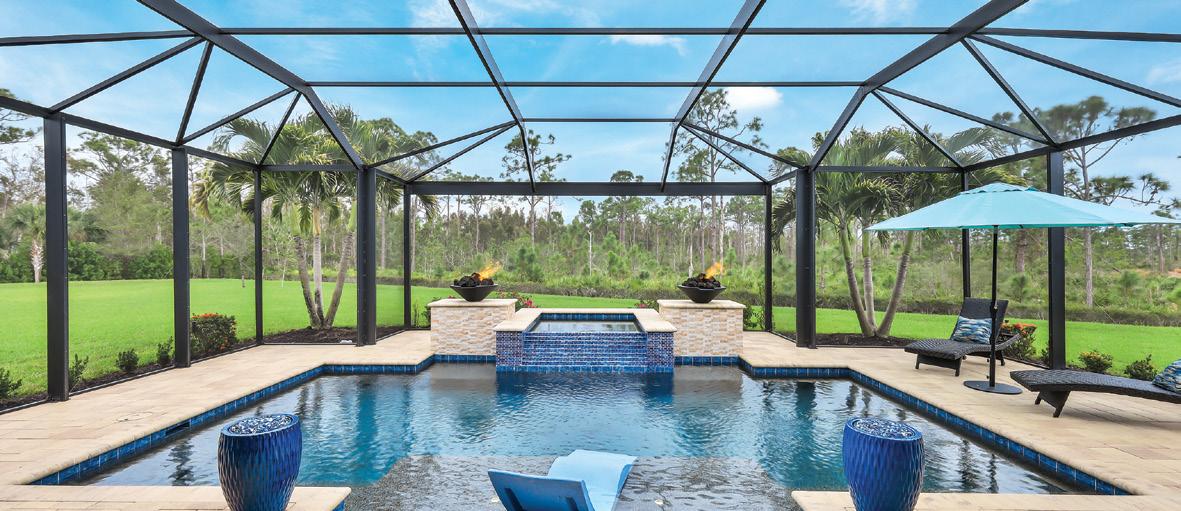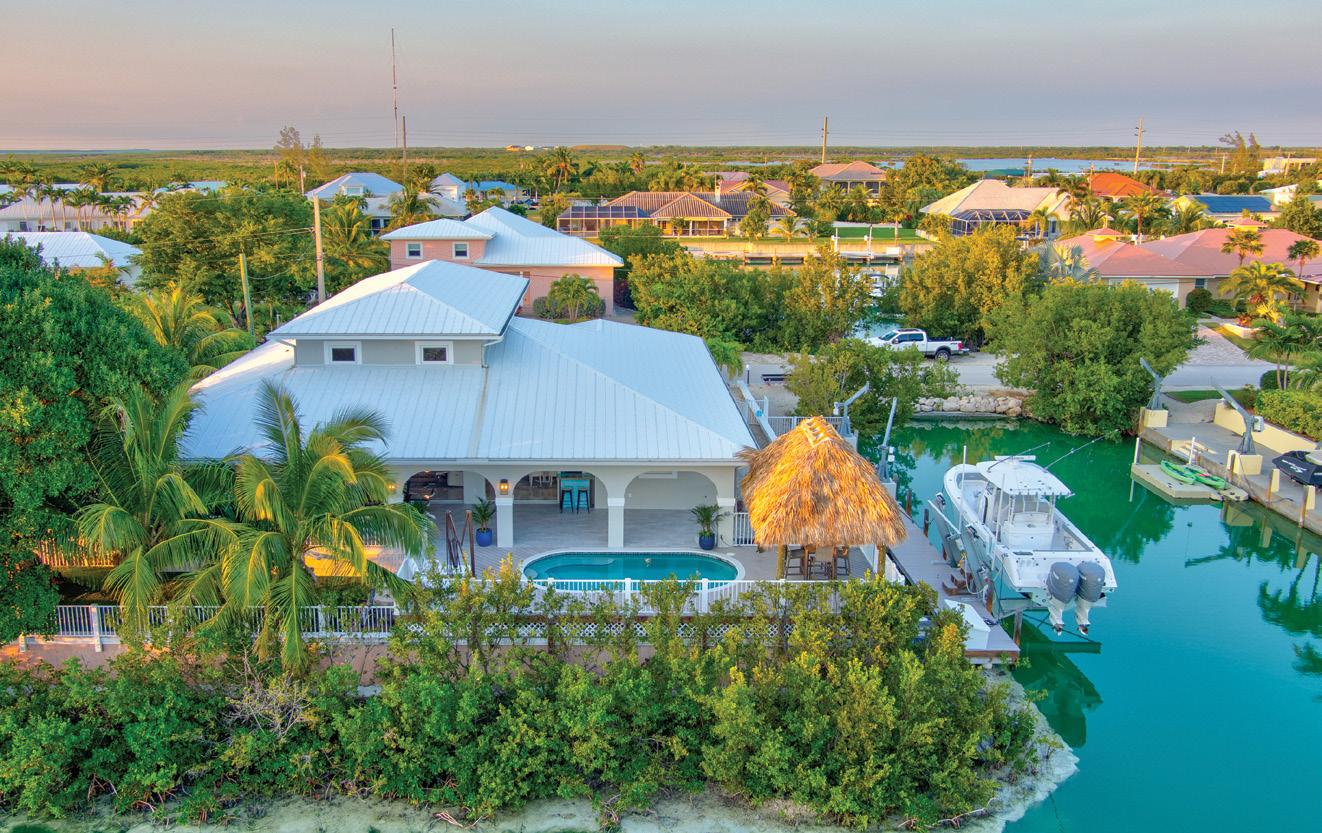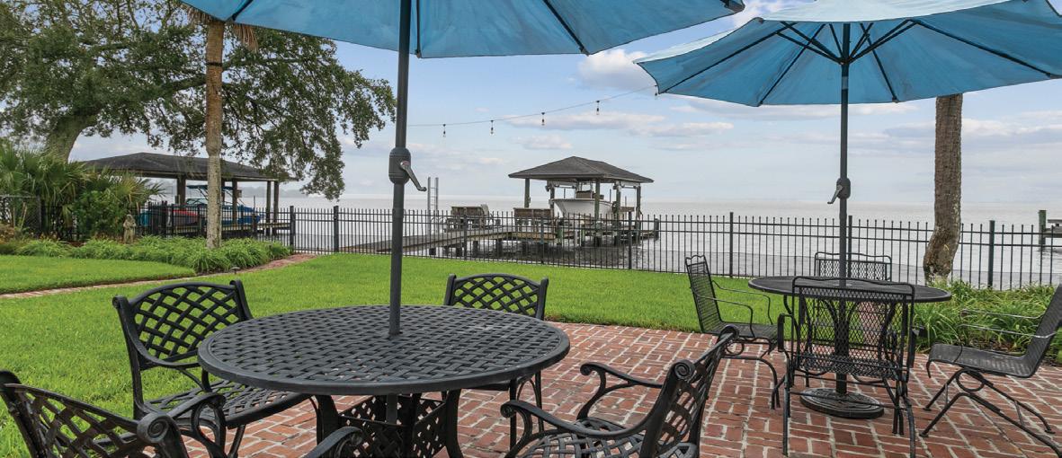 This brand-new waterfront home features 5,424 square feet of living space, 4 bedrooms, 4.5 baths, an elevator, an infinity-edge pool, mature landscaping, and breathtaking water views. The shared dock comes with a lift and is in a no-wake zone, making it easy to explore the azure waters of the Gulf Coast.