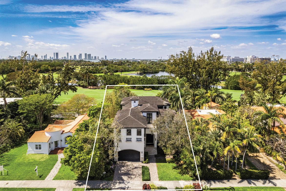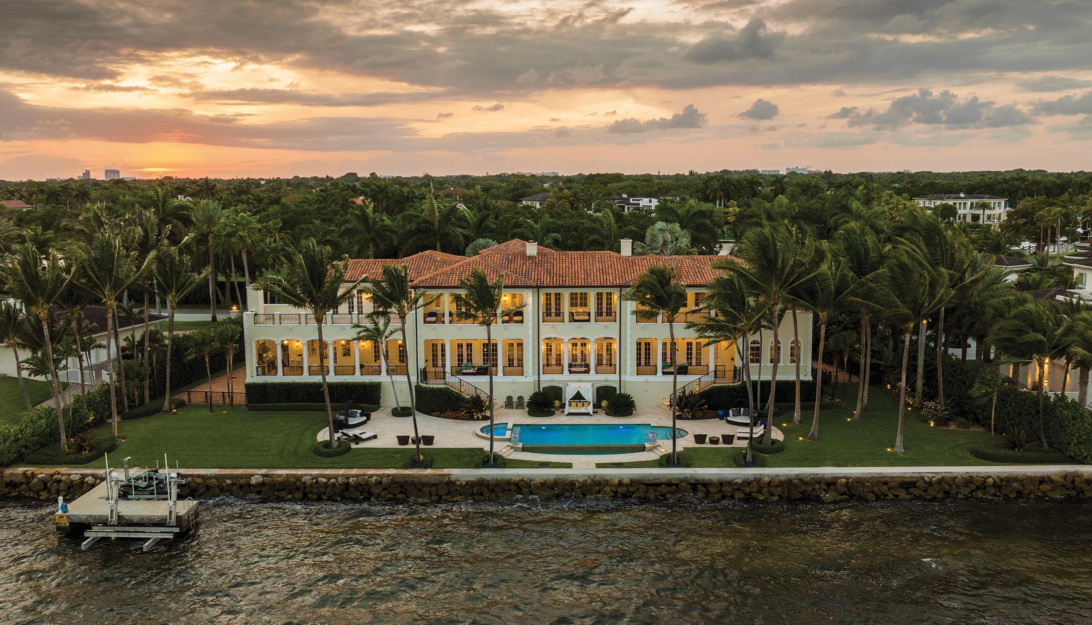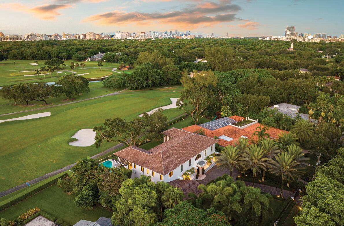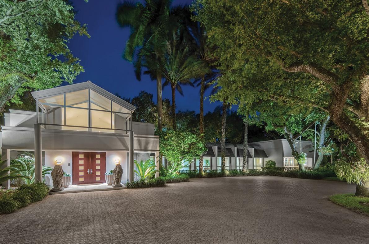 and 4 baths in the main house and a 1-bedroom and 1-bath suite off the garage. Additional features include formal living and dining rooms, a large kitchen, Florida room and a large deck overlooking the expansive backyard and golf course. Offered at $6,750,000