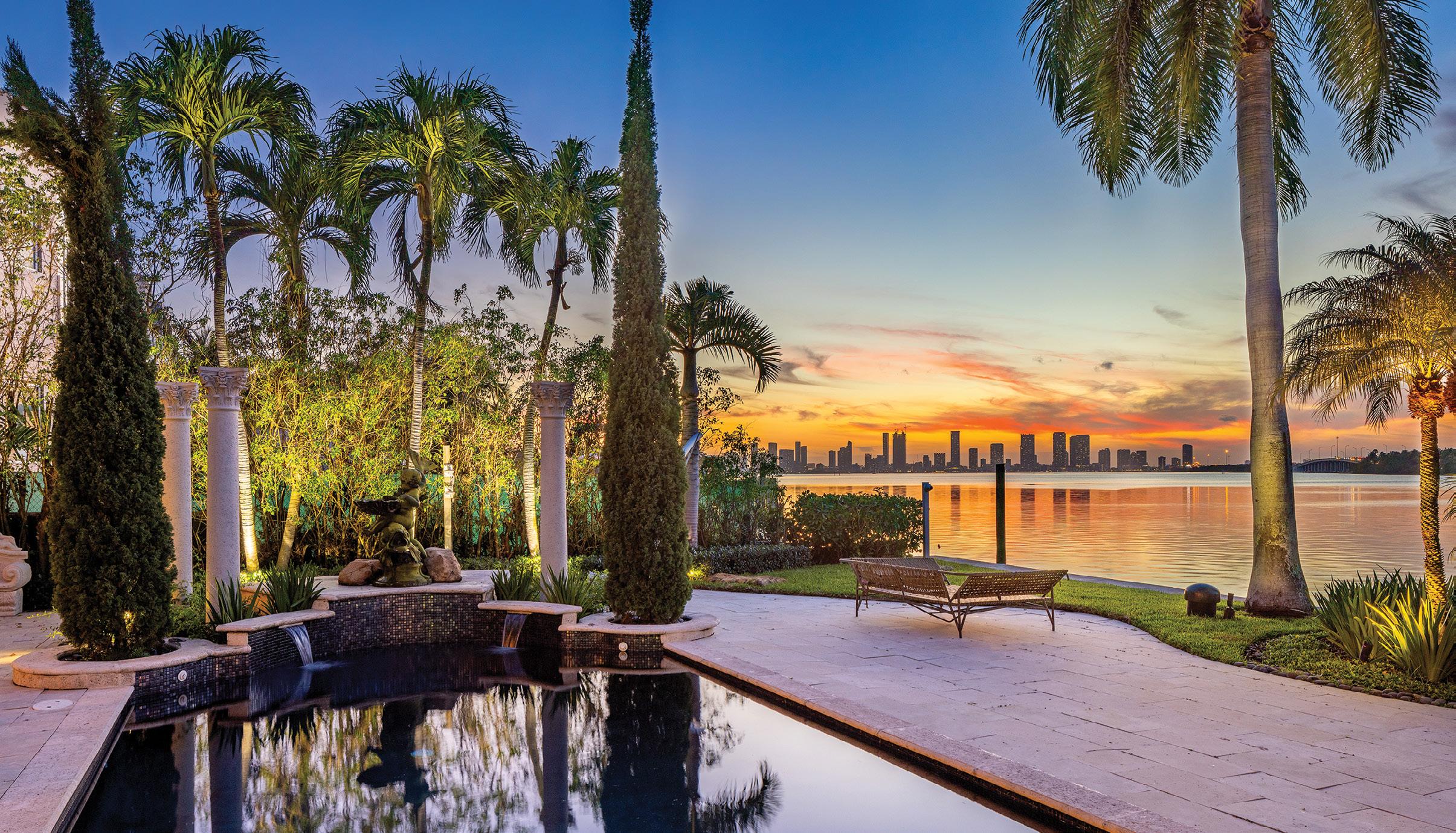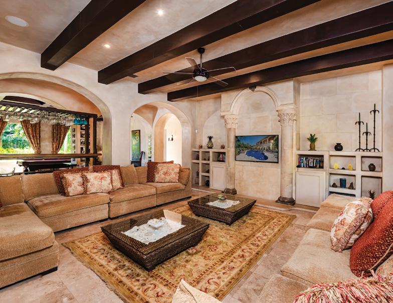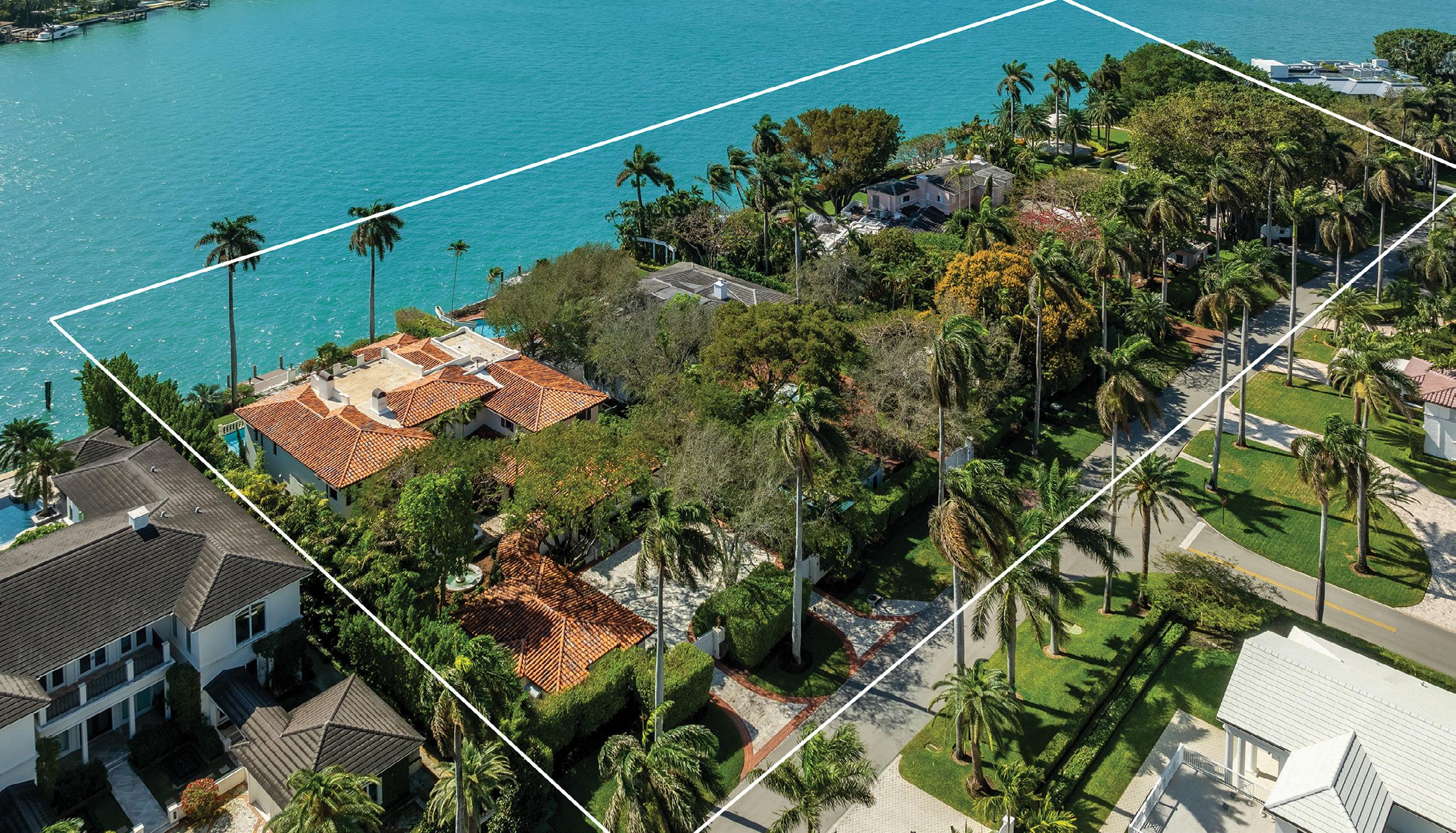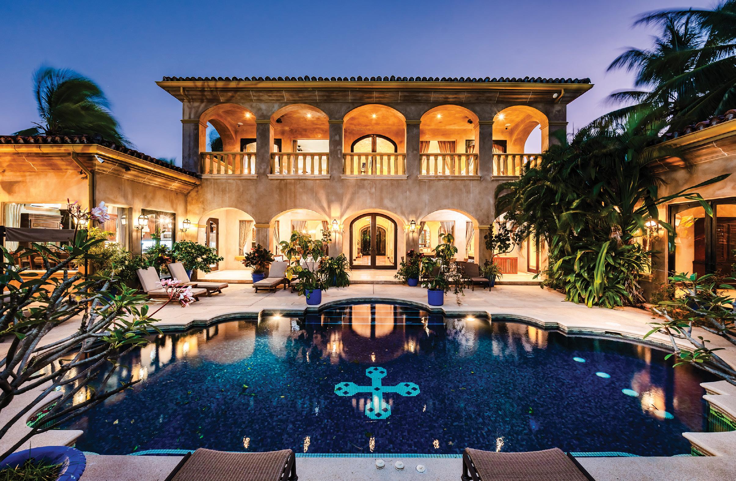 and 4 baths in the main house and a 1-bedroom and 1-bath suite off the garage. Additional features include formal living and dining rooms, a large kitchen, Florida room and a large deck overlooking the expansive backyard and golf course. Offered at $6,750,000
