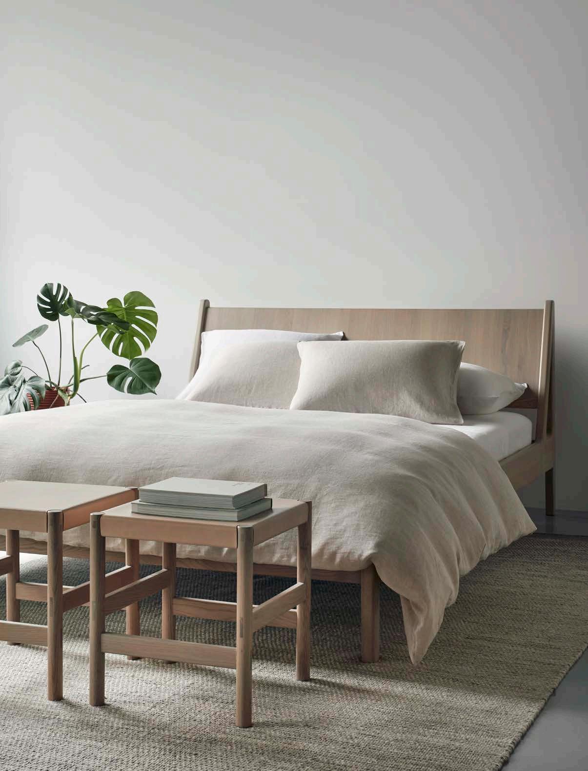 Handcrafted in Canada and built to last, the Fulton Furniture Collection’s white oak construction and handstitched leather details pair perfectly with our Natural Bedding Essentials to create an airy, minimalist look.