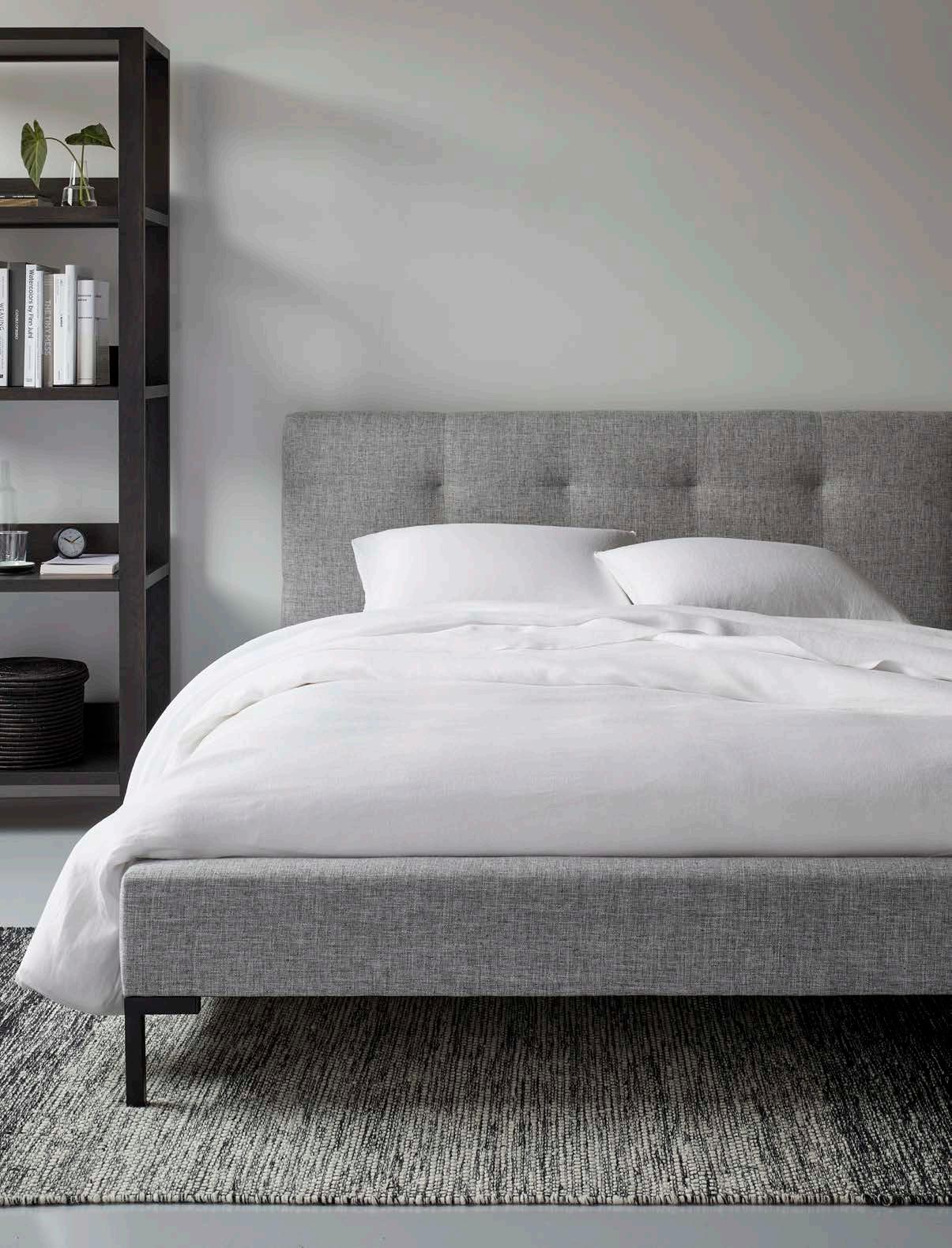 PLUME SIENNA BED Queen $3000 / King $3400 BURGUNDY CHAMBRAY LINEN BEDDING Duvet Cover Twin $195 $146.25 / Full $240 $180 Queen $260 $195 / King $285 $213.75 Fitted or Flat Sheet Twin $95 $71.25 / Full $115 $86.25 Queen $140 $105 / King $160 $120 Pillowcase Set of 2 Standard $48 $36 / King $60 $45 SASHI GEO GRAY BEDDING Duvet Cover