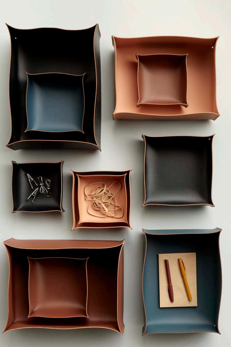 TWIST LEATHER WASTE BIN $57 Deep Teal, Pecan, Clay or Black