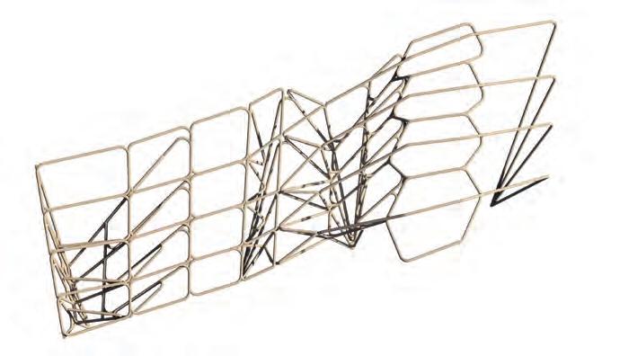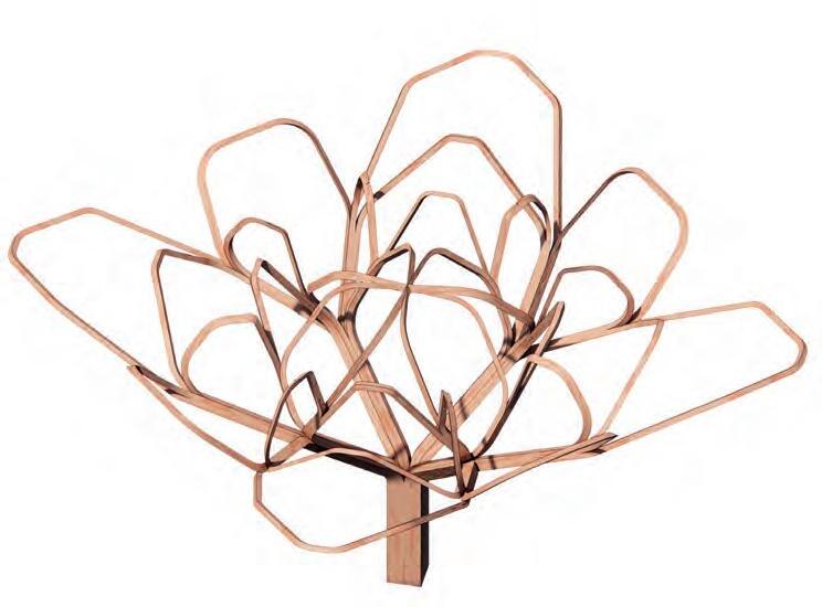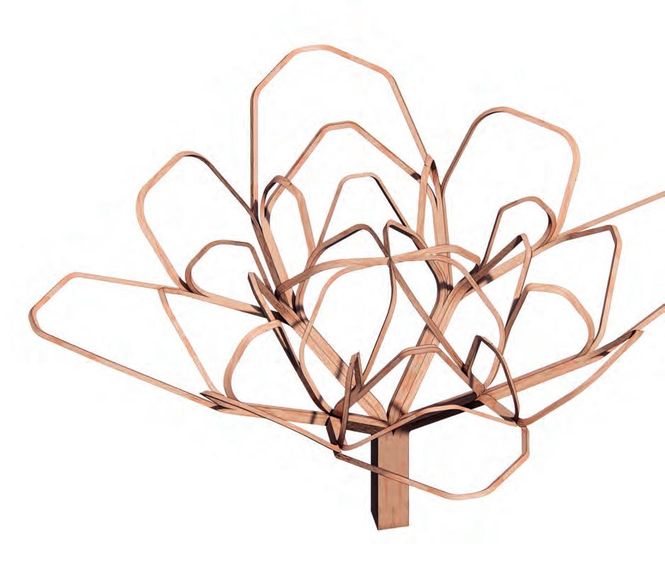 This structural tree is composed of laminated ribbon-like components that are bent to form the branches.