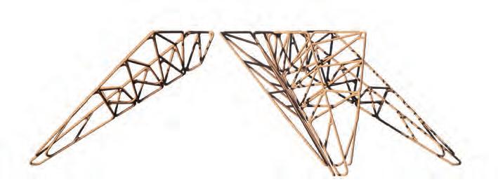 The pure form of a topologically optimised load-bearing structure can be generated with various software. The one to the left was obtained with grasshopper, (parameters were set to mimic the use of wood).