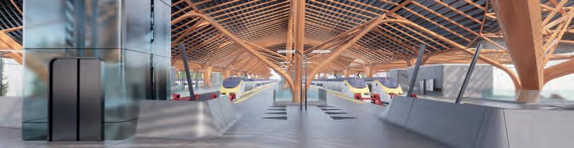 The interchange bridge will allow passengers to easily change platforms if needed, and arriving passengers will be able to admire the mountains from this level of the station