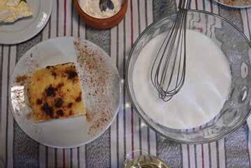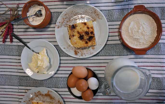 Παραδοσιακά λουκάνικα με εσπεριδοειδή (πορτοκάλι, λεμόνι) Παραδοσιακή γαλατόπιτα (που έκαναν οι κτηνοτρόφοι στο κούρεμα)