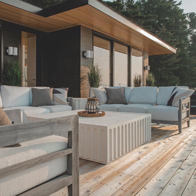 Erika created an outdoor oasis with Coastal Living Outdoor pieces for her family of 8 with plenty of alfresco spaces.