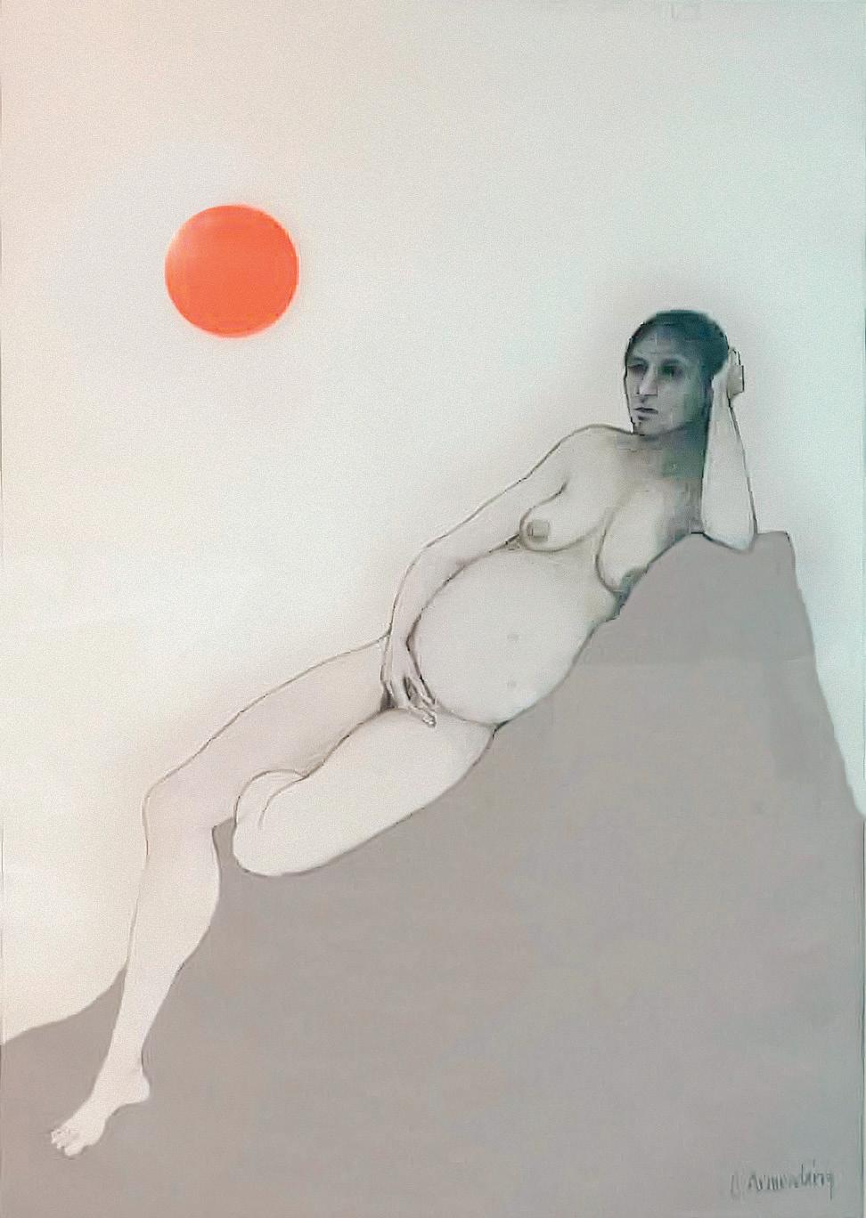 La serie de dibujos que presento en esta muestra la he llamado Momentos. Son el resultado de una serie de eventos subsecuentes: el dibujo rápido en el taller, continuar el dibujo en casa, sin la tiranía de reproducir la luz y la sombra; solo la emoción que guía la intensidad del lápiz. Sigue aplicar los tonos claros y oscuros en un intento de ruptura con la realidad; digitalizar el dibujo y después intervenir con colores y texturas. Y finalmente, el resultado en una impresión en papel.