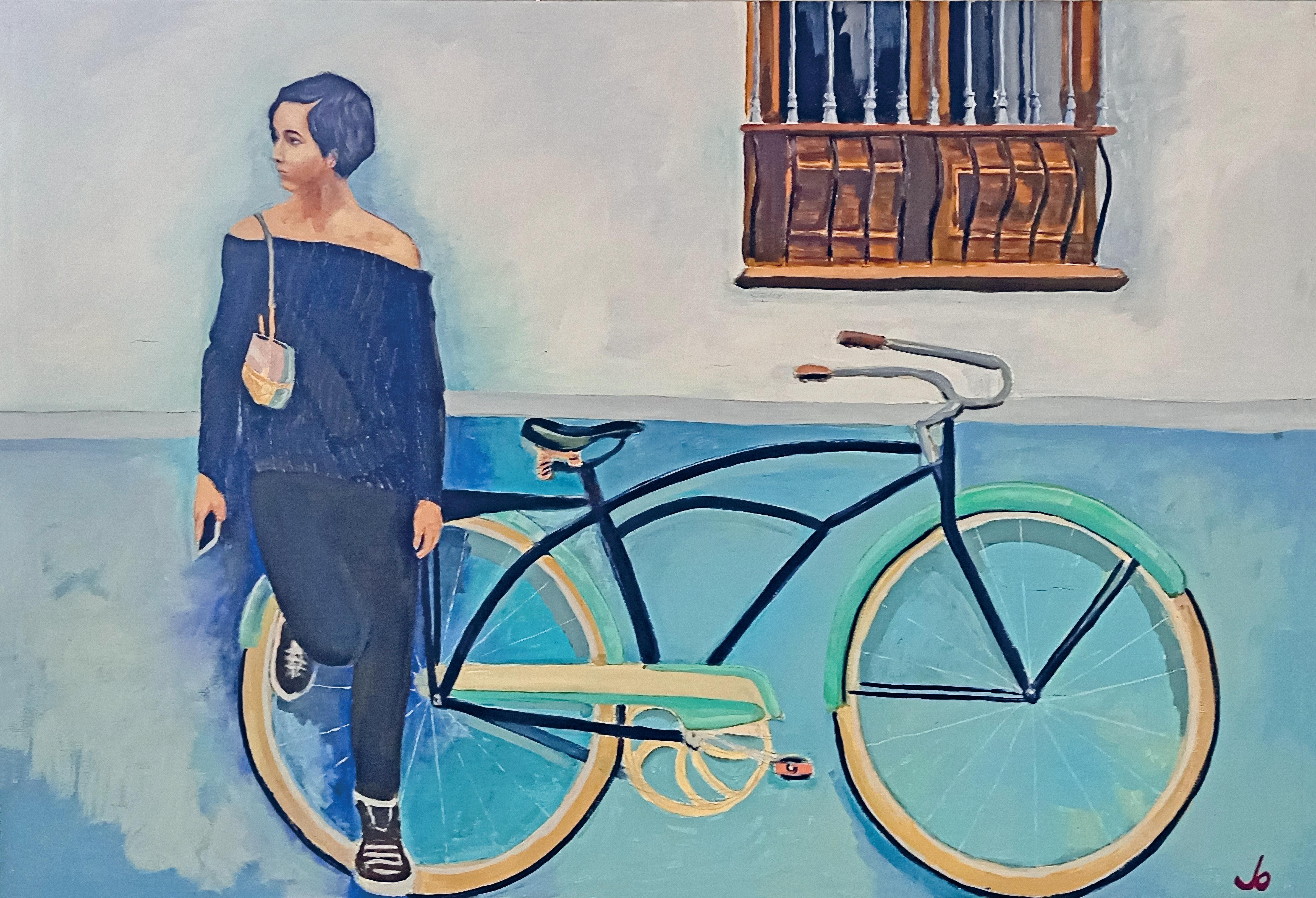 La obra de esta exposición está en el ámbito de la pintura impresionista dado que mi incipiente formación como pintor es en la zona de Valencia con la escuela de Sorolla: Zara en la playa de Alicante, captura la luminosidad matizada de la playa mediterránea, el mar, que parece lago y la temperatura fría de las playas europeas, con colores transparentes. Sofía en Cartagena Colombia, ya es un reto con el tema del retrato y la figura humana. Visitando Cartagena en familia, nos encontramos con una bicicleta pintada en la calle y mi hija Sofia posó para esta foto. Plaza en Alicante España, se acerca al paisaje urbano, pero desde el punto de vista de la pintura, porque captura el ambiente, donde los personajes son la escala y son estáticos. Por último, Joven en Santorini, Grecia, es una figura ante la arquitectura griega mediterránea, lo que me acerca desde las artes plásticas a la arquitectura, capturando el ambiente, tanto de estilo arquitectónico como el sitio, donde la escala de la arquitectura es la joven corriendo, pero difuminada como fantasmita, que se integra al sitio con su vestido blanco.