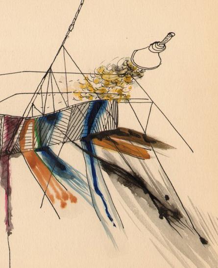 Figura 85 «Estudio para la instalación Bloodflames», 1947. Gouache y tinta sobre papel. Hugo Gallery, Nueva York. © 2014 Austrian Frederick y Lillian Kiesler Private Foundation. Página 72.
