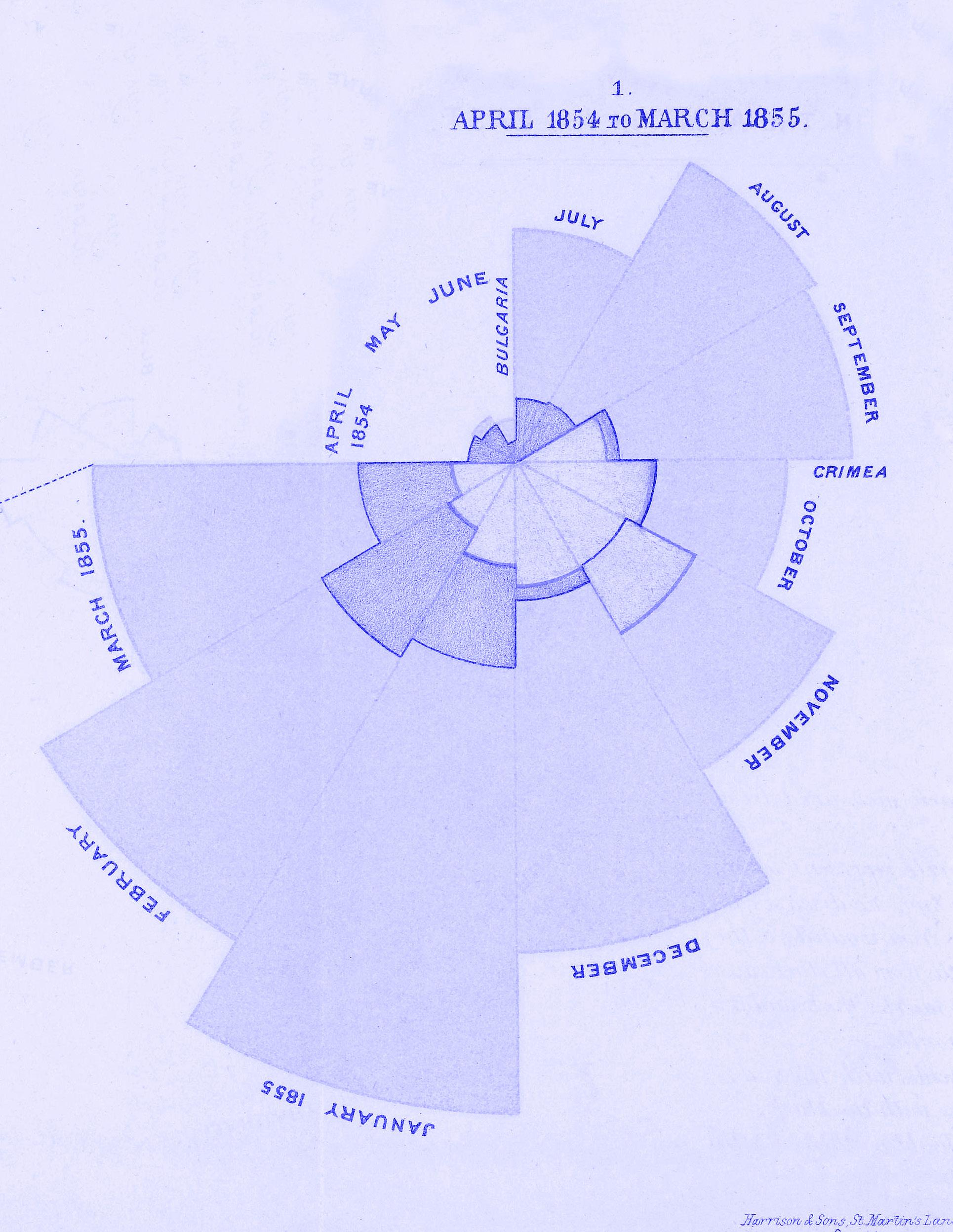 Figura 87. «Diagrama de rosa», Florence Nightingale. En Notas sobre asuntos que afectan la salud la eficiencia y la administración hospitalaria del ejército inglés, 1858. Página 74.