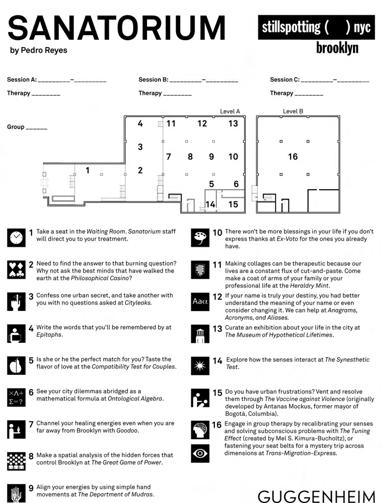 Figura 144. Hoja de sala Sanatorium, Pedro Reyes, Guggenheim-Stillspotting, 2009, Página 149.