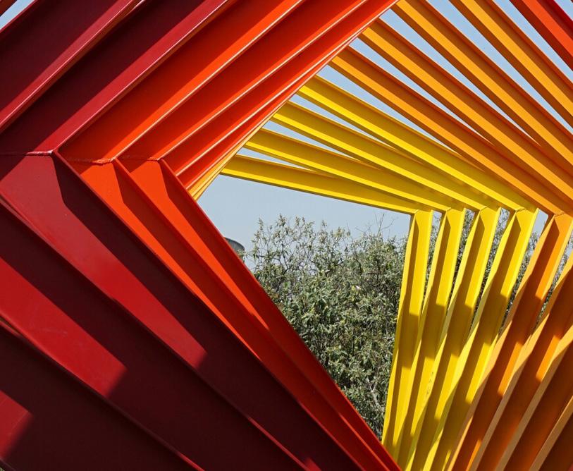 La investigación para esta tesis se articula a partir de una intersección entre el diseño de libros educativos y las educación de las artes contemporáneas visuales en México, a través de la comprensión de la historia de esta disciplina y sus posibilidades futuras. Durante el proceso de búsqueda de fuentes y ejemplos para este trabajo, en 2014 tuve oportunidad de presenciar la exhibición de «Vórtice», una instalación de la artista mexicana Marcela Armas para el Museo de Arte Contemporáneo (muac), en el Centro Cultural Universitario de la unam. Y fueron sus coincidencias con mi propio trabajo las que me convencieron que este era el mejor motivo visual para dar identidad gráfica al diseño de mi proyecto de tesis.