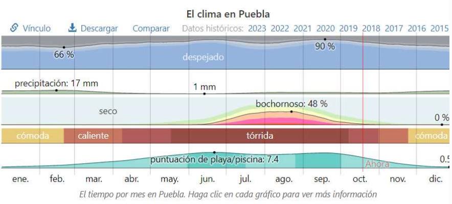 Fig. 8. Otros datos promedio para la ciudad de Puebla. Extraído weatherspark.com el 18 de octubre de 2023.