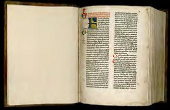 El primer libro impreso con la prensa fue la llamada Biblia de 42 líneas de Gutenberg conformada en dos volúmenes de folio par de 324 y 319 páginas cada una, dejando lugares en blanco para rellenar manualmente las capitulares, alegorías e ilustraciones que llenarían de color cada hoja de la Biblia.