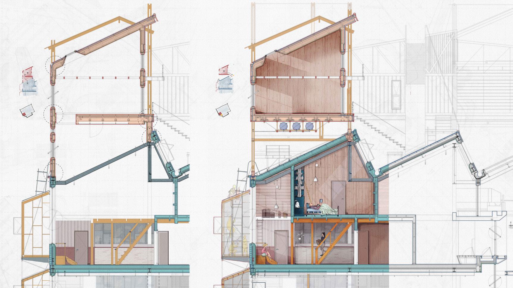 This year the programme has been focusing on prefabricated systems applied to residential buildings. The year project had the objective to requalify and adapt a neglected urban space in Canning town transforming it into a cutting edge residential building. The design had to be informed by sustainable strategies and feasibility criteria while taking into account the needs of contemporary society to target an holystic approach to sustainable urban growth.