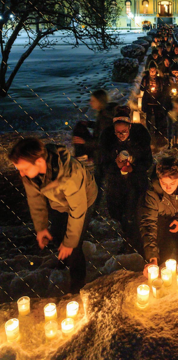 Our mission to be a force for good in the world means we are committed to creating a more just and peaceful world for everyone. We recognize the humanity in all, striving toward inclusion through campus programs and activities. Each year, our signature Walk the Walk Week takes place around Martin Luther King, Jr. Day, celebrating the diversity of our campus while educating our community on issues of diversity and inclusion. A candlelight prayer service under the Golden Dome begins the week.