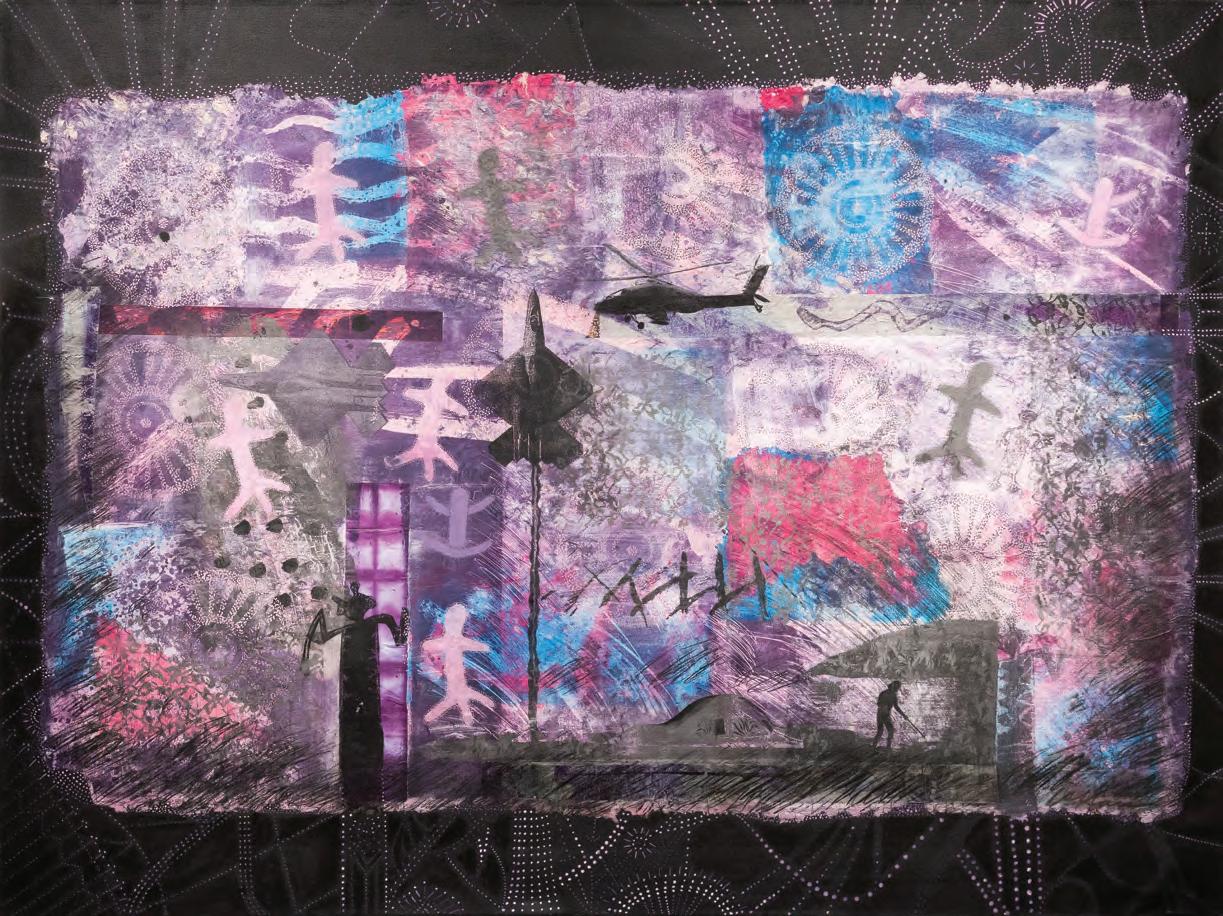 Jean LaMarr (b. 1945) makes art that addresses issues such as cultural stereotypes, representations of women and Native American people, and the traditions of her ancestors. Although she has worked primarily as a printmaker, she is also known for her paintings, assemblages, videos, and installation work. Her exhibitions are many and span the United States and Germany. LaMarr’s work was included in an exhibition touring the US titled Committed to Print, initiated by the Museum of Modern Art in New York. She also designs and creates award-winning beadwork.