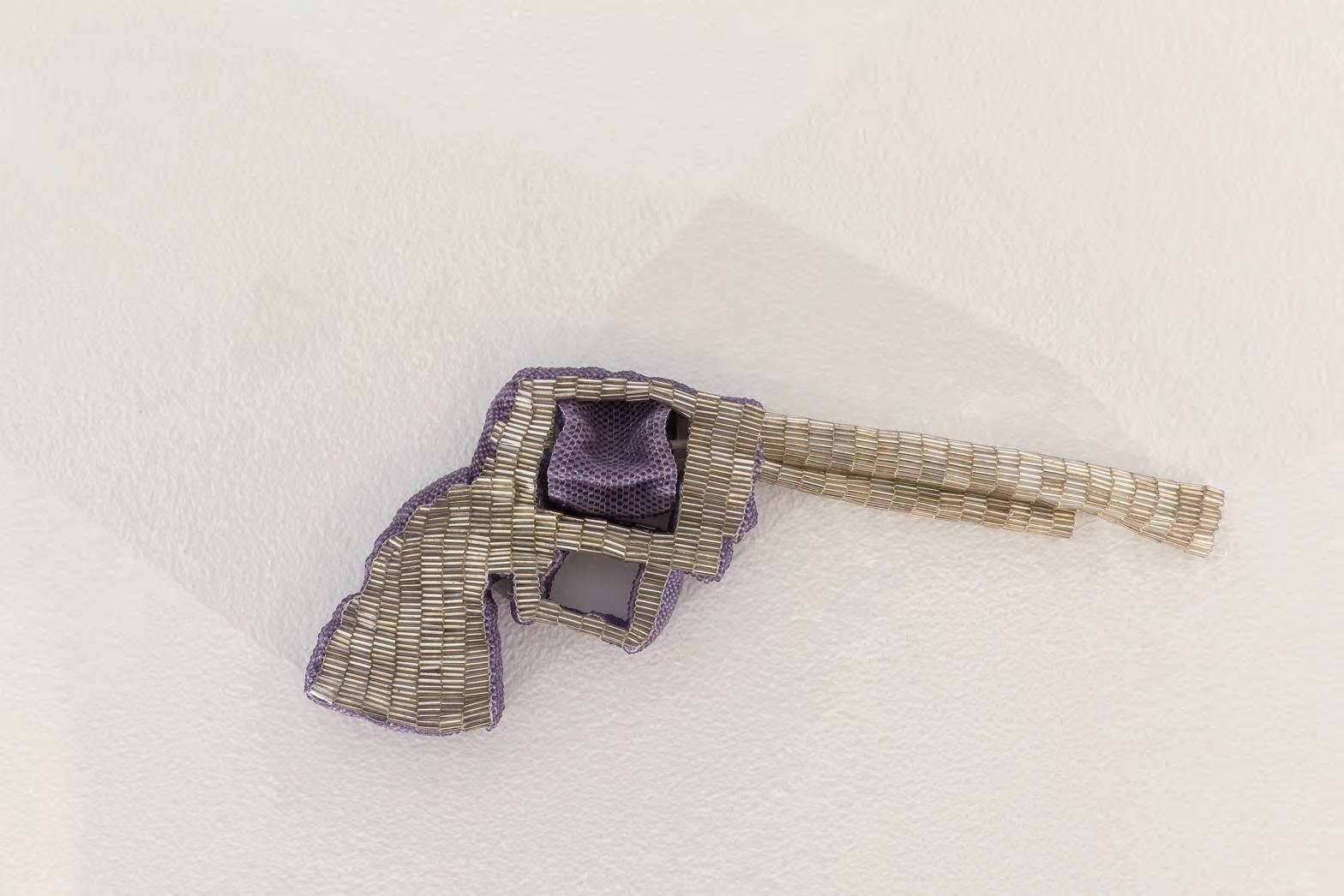 Revolver (Cowboy Gun) 2019 Mixed media with beads and thread 4.5 x 11 x 1 inches
