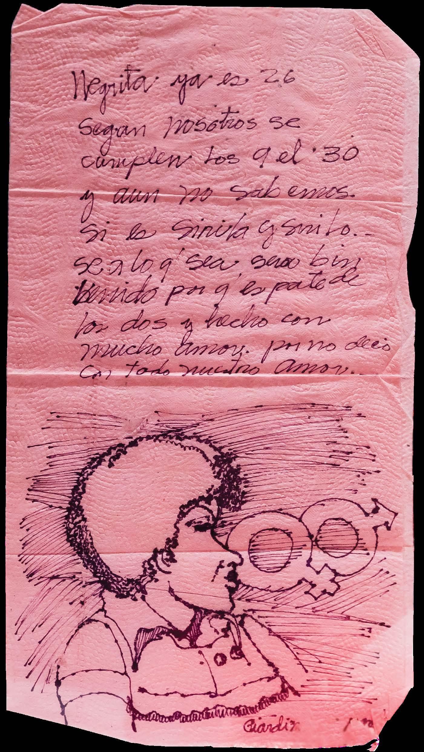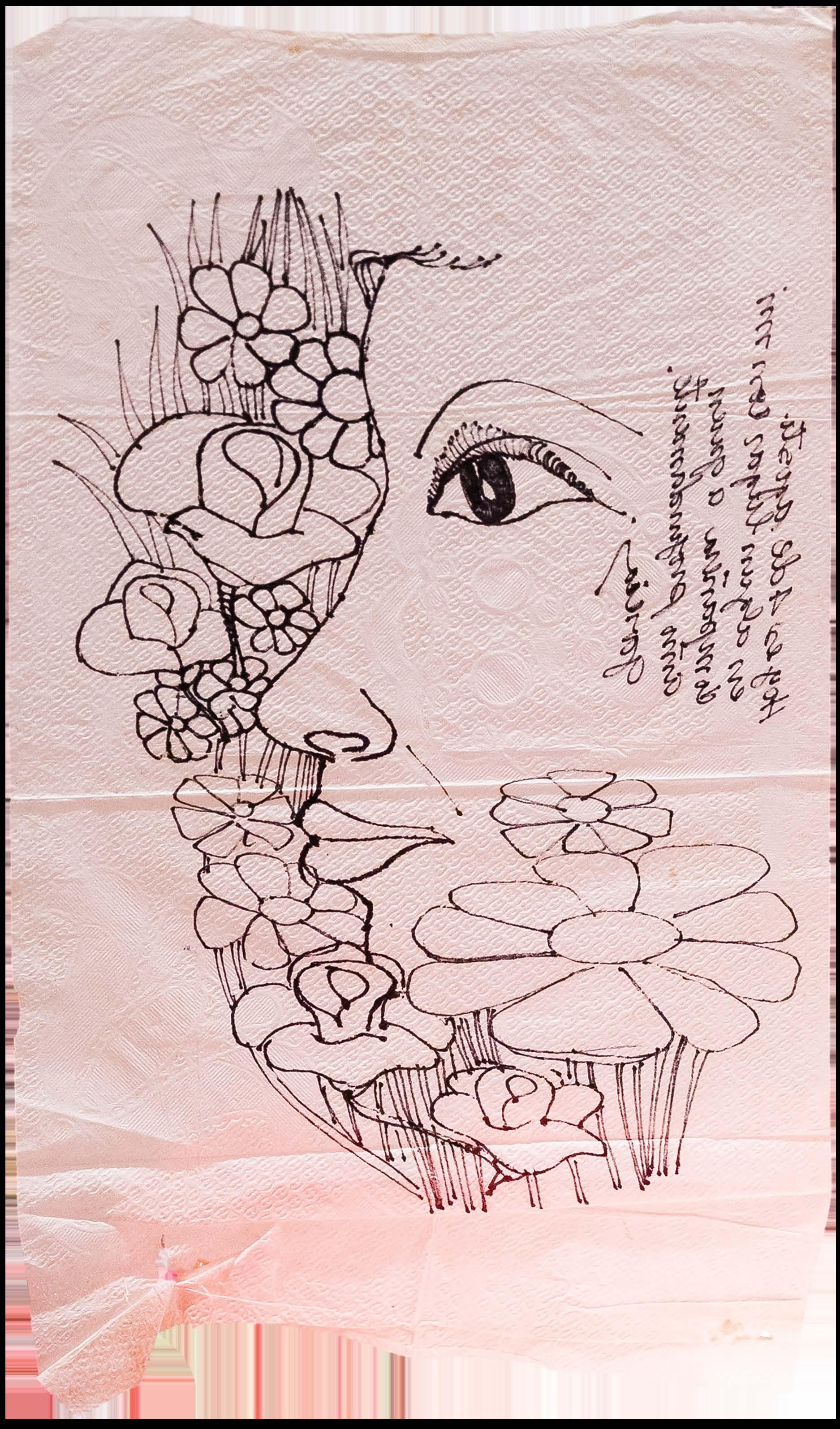 26. Sketch drawing of artist’s mother by Ramiro on a napkin.